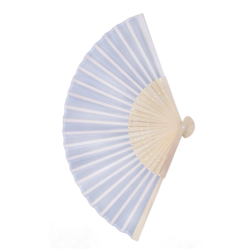 TOP 15pc Weiss Seiden Fan Bamboo Handfächer Pocket Fan Stofffaecher Foldable Dekofaecher mit Box Weddin